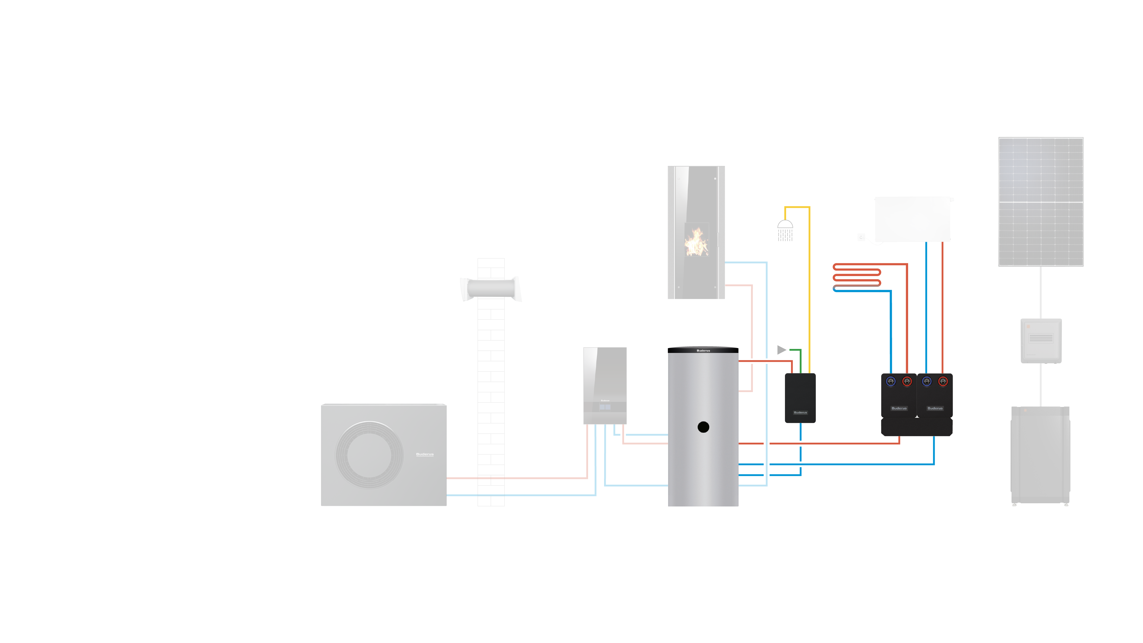 • ermöglicht die Einbindung einer Logavolt WLS11i P+ zum PV-optimierten Betrieb, wenn keine Buderus Wärmepumpe vorhanden ist